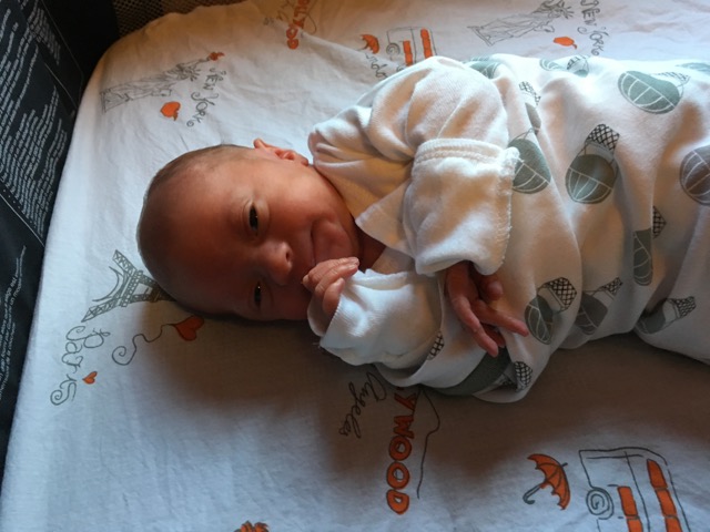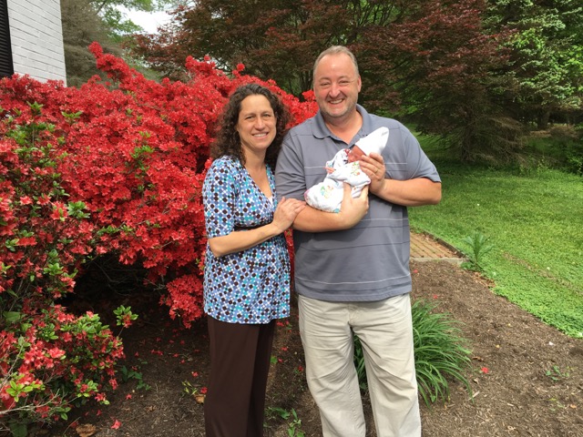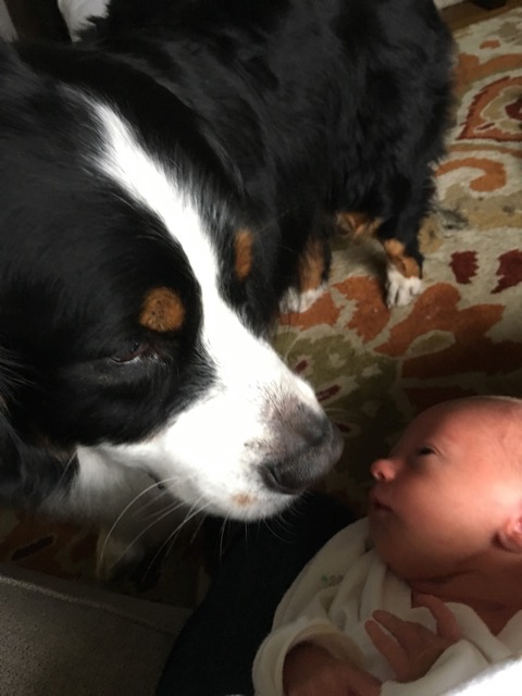 I'm delighted to forward this happy announcement from Heather. Isn't Rowan just beautiful? She reminds me of Stevie Wonder's song Isn't She Lovely. As you can see from the photos, all are doing well (though the dog looks a bit concerned).